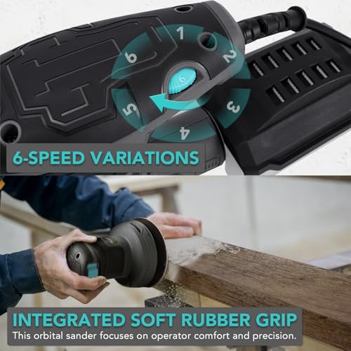 [Variable-Speed] — In addition to its raw power, this sander features a convenient 6-speed variable speed control dial (8,000 – 13,000 RPM). This allows you to precisely match the sanding speed to the material and application, ensuring optimal results. Whether you’re working on delicate wood finishing or heavy-duty metal sanding, this sander offers the versatility to handle it all.