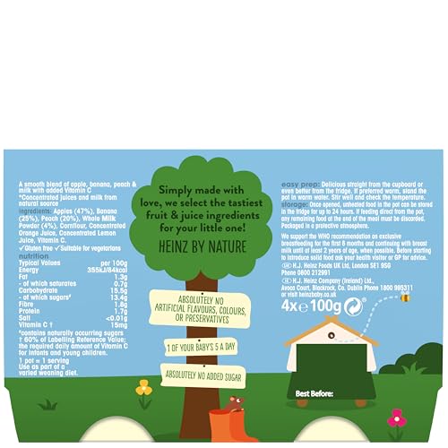 Heinz By Nature Fruity Medley Custard Baby Food Dessert Pots 6+ Months 4 x 100g. Simply made with love, Heinz selected the tastiest fruit and juice ingredients for your little one. Made with natural ingredients* plus vitamin C *Concentrated juices and milk from natural source.