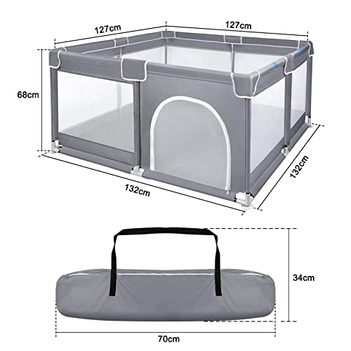 ⭐【Super large children’s play fence] Size: 127*127*68cm, color: dark gray, body material: environmentally friendly Oxford cloth + alloy steel pipe + ABS connector, product weight: about 8-9kg, applicable age: 6 months-6 years old
