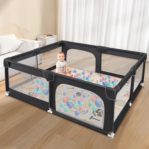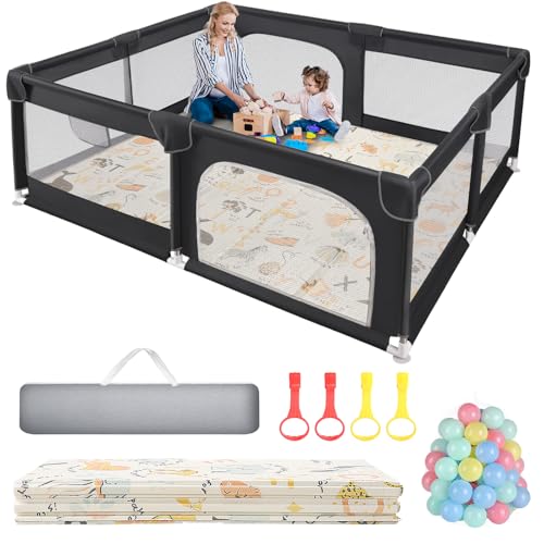 Specification: Sour Lemon Baby Playpen with Mat, 180x200cm playpen for Baby and Toddlers with Baby Play Mat, Extra Large Baby Playpen, Kids Play Pen Baby Fence Big Playpen with Storage Bag Including 50 Ball Pit