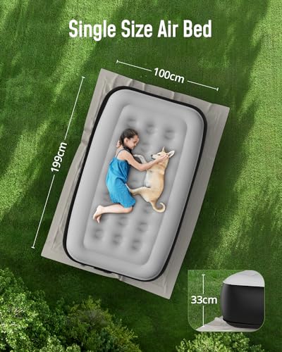Airefina Single Airbed, Inflatable Mattress with Built-in Electric Pump, Blow Up Mattress in 2 Mins Self-Inflation/Deflation, 33cm Portable Air Bed Storage Bag for Camping,Travel & Guests,Home Use