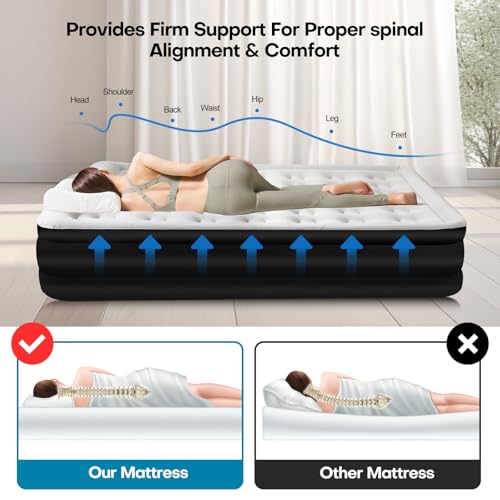 Full Body Support : Our inflatable mattress is designed with robust internal air coils to keep your blow up bed flat and firm and support your body from head to toe as you sleep. The integrated raised pillow helps provide a comfortable and restful night’s sleep by improving your spinal alignment overnight