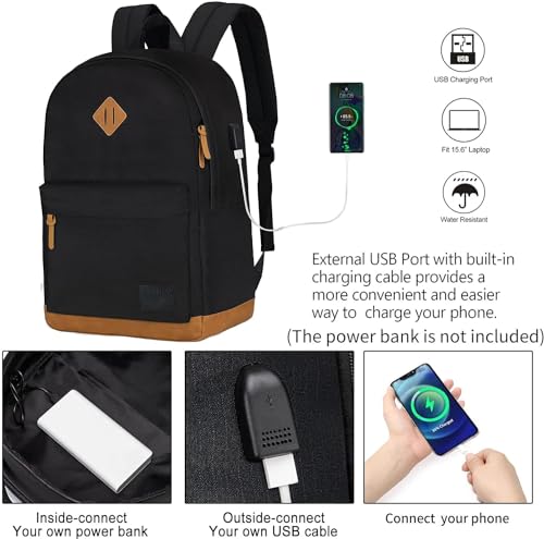 KOPHLY Large Carry-on Travel Laptop Backpack with USB Charging Port For Men and Women, Classic Backpack for College, Work Bag, Travel Backpacks