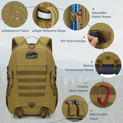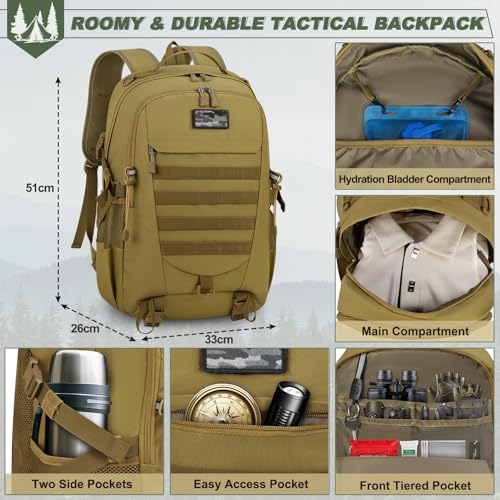 RAINSMORE Military Tactical Backpack Large Hiking Camping Rucksack 40L Water Resistant Molle Hunting Trekking Rucksack Brown