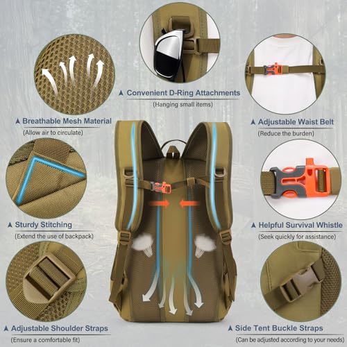 🏔️Breathe Easy, Survive Smart:Ergonomic airflow channels transform grueling climbs – ventilated backpanel wicks sweat as contoured shoulder straps redistribute 15kg loads like feathers.The chest strap can perfectly reduce additional stress when you carry heavy loads, which is also designed as a survival whistle to bring assistance quickly in emergency situations.