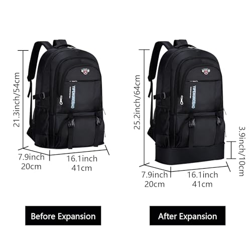 Lightweight & Expandable: The capacity of large camping backpack is 65 liters, weight: 1kg/2.2lbs, size: 54 x 20 x 41 cm / 21.3 x 7.9 x 16.1 inches, the expanded size: 64 x 20 x 41 cm / 25.2 x 7.9 x 16.1 inches. Ideal travel backpack, an essential backpack for hiking, backpacking, trekking, climbing, mountaineering and cycling for women and men.