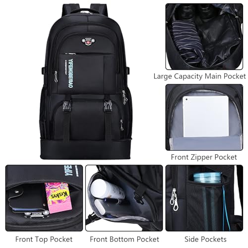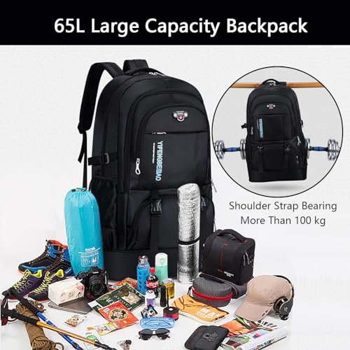 Wesoke 65L Hiking Backpack Black, Expandable Travel Hiking Daypacks, Waterproof Large Camping Backpack for Men Women, Foldable Lightweight Outdoor Sport Backpacking Backpack for Climbing Touringr