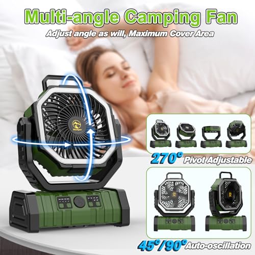 Multper Oscillating Camping Fan with LED Lantern, 20000mAh Rechargeable Outdoor Tent Fan with Light & Remote,4 Speeds Powerful Cooling USB Desk Fan, Battery-powered fan for Fishing, Picnic (Green)