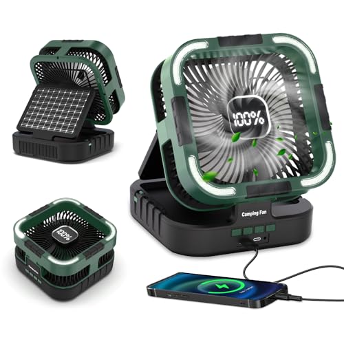 RECHARGEABLE FAN PORTABLE: This camping fan rechargeable has a foldable handle and lightweight build, making this solar fan perfect for beach trips, picnics, and backpacking. Stay cool anywhere—your go-to solar powered fan for adventures! This battery powered fan delivers a reliable, energy-efficient cooling experience that’s easy to carry wherever you go.