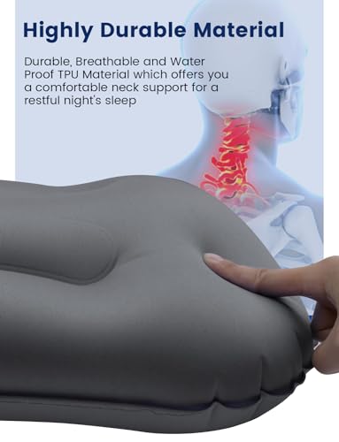 Inflatable Camping Pillows, Travel Pillow for Neck, Ultralight Beach Pillow, Blow Up Pillows Compact, Inflatable Neck Cushion Air Pillow for Travel, Camping, Hiking, Beach, Sleeping (grey)