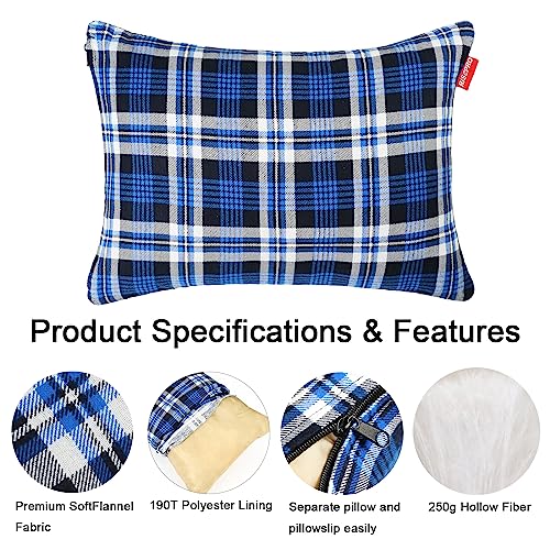 RISEPRO Outdoor Camping Pillow Lightweight, Compressible, Flannel Travel Pillow Cases, Washable Removable Pillow Cover Camping and Backpacking Blue