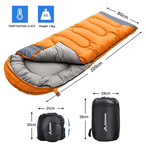 [Ultimate Sleep Experience] When you are on your outdoor adventures a good night’s sleep is necessary and BISINNA sleeping bag will help in keeping you warm, cozy and rested. The camping bags use 400GSM hollow cotton to keep you warm all night. Further, the comfort temperature is at 10°C/50°F, comfort limit is at 5°C/41°F and extreme temperature is at 0°C/32°F.