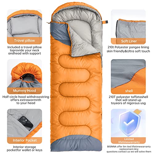 BISINNA Sleeping Bag with Pillow – 4 Season Lightweight Waterproof Warm Sleeping Bag with a compression sack for Adults, Women, Men’s Outdoors Camping, Hiking, Backpacking
