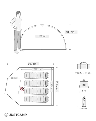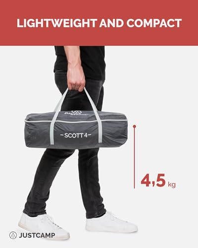 JUSTCAMP Scott 4 Camping tent 4 person dome tent with vestibule, sleeping cabin