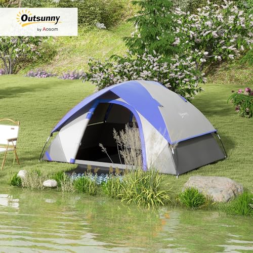 Outsunny Camping Tent, 2 Man Dome Tent, 3000mm Waterproof, with Sewn-in Groundsheet, Carry Bag and Top Hook, for Fishing Hiking Festival