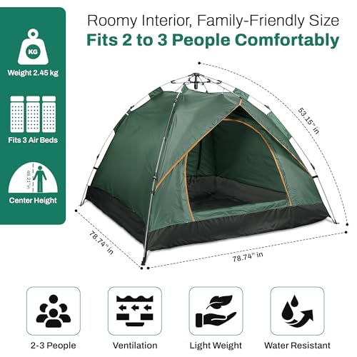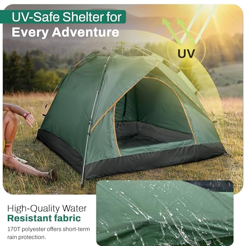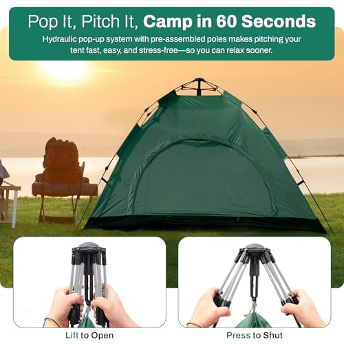 𝐄𝐚𝐬𝐲 𝐭𝐨 𝐔𝐬𝐞 𝐅𝐨𝐥𝐝𝐢𝐧𝐠 𝐓𝐞𝐧𝐭: This automatic pop up tent hydraulic system allows you to set up the tent within a minute. Pre-assembled strong poles and a lightweight construction of dome tents make assembly easy and efficient, allowing you to fully enjoy your outdoor vacation.