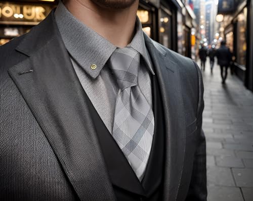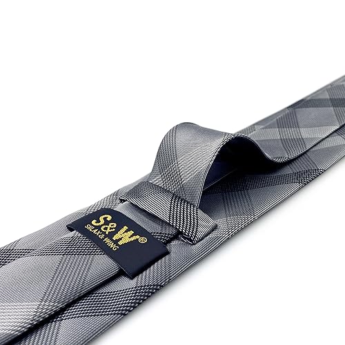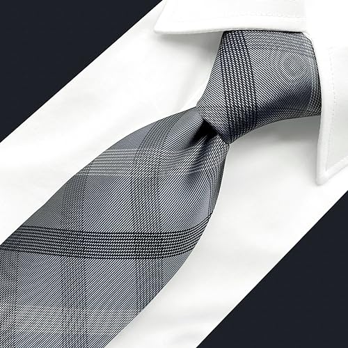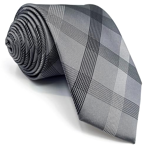 Shlax&Wing Skinny Necktie Mens Tie Grey Checked 2.36″ Width Silk Business Slim
