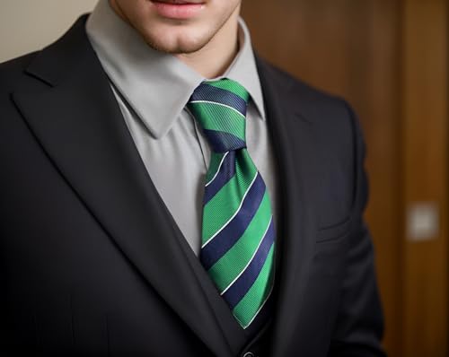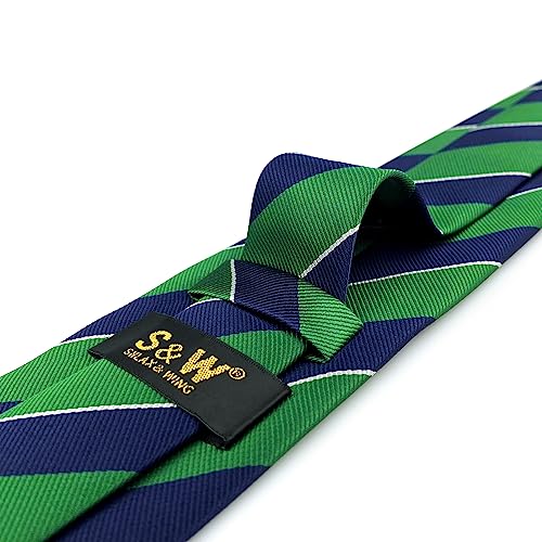 Shlax&Wing Stripes Mens Ties Blue Green Silk Silk Necktie Formal