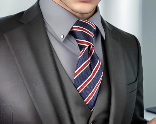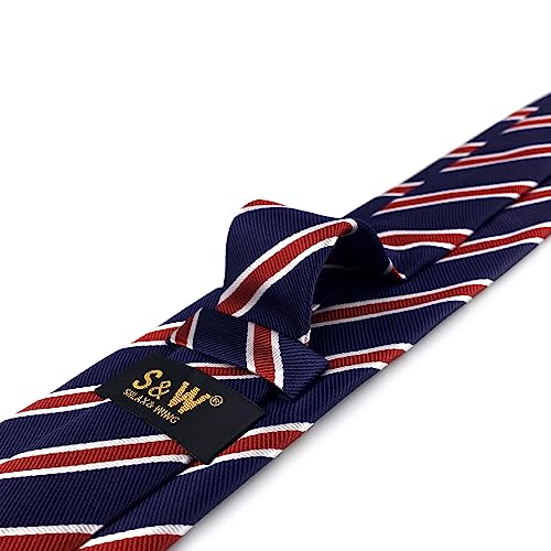 S&W SHLAX&WING Striped Ties for Men Blue Red Business Stripes Necktie for Suit Jacket