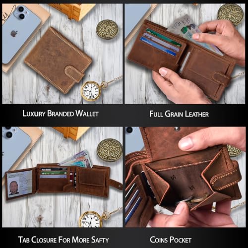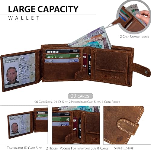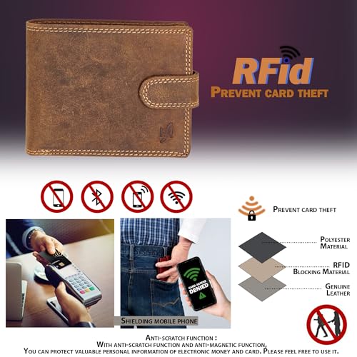 STARHIDE Handmade Wallets for Men UK | Genuine Distressed Hunter Leather | RFID Blocking Notecase Wallet | Coins and Id Card Holder | 710 (Brown)