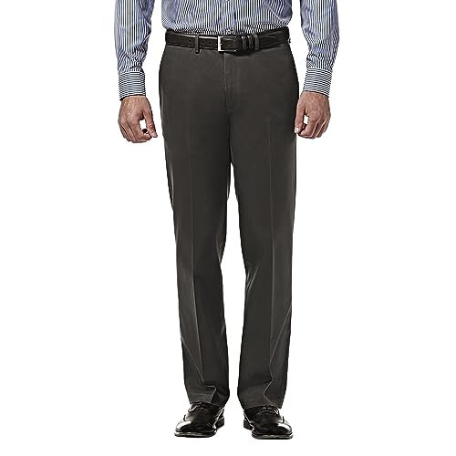 Haggar Men’s Premium No Iron Straight Fit Invisible Flex Waist Plain Front Pant Casual