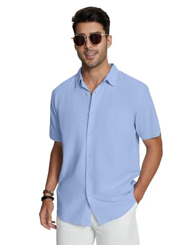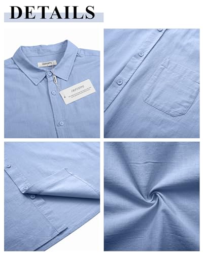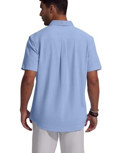 Friptspyg Mens Shirts Short Sleeve Linen Button Down Beach Causual Shirts for Men with Pocket