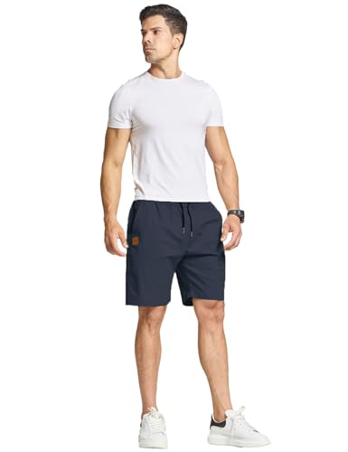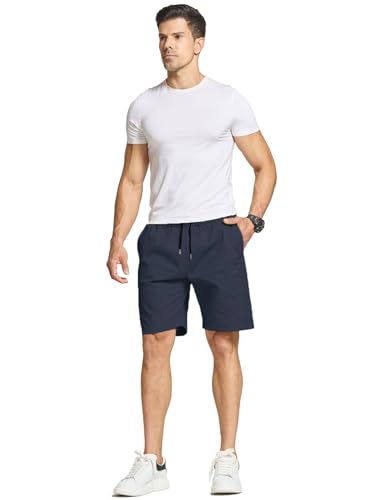 JustSun Mens Summer Shorts Casual Cotton Chino Shorts with Elastic Waist Pockets