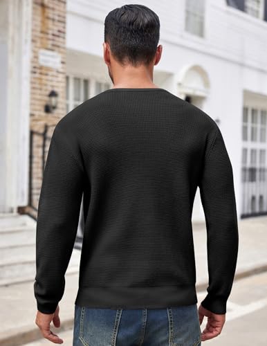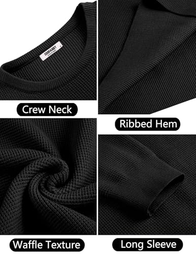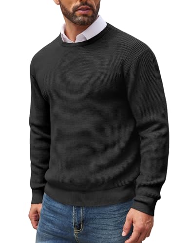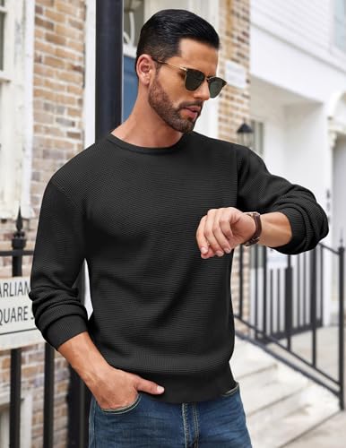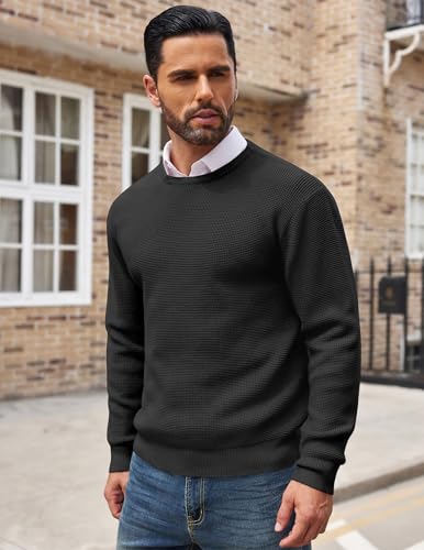COOFANDY Men’s Jumpers Crew Neck Knitted Sweaters Slim Fit Casual Lightweight Waffle Textured Long Sleeve Sweatershirts