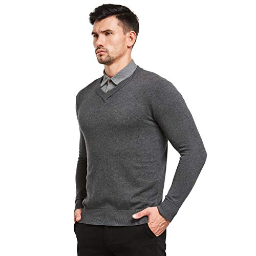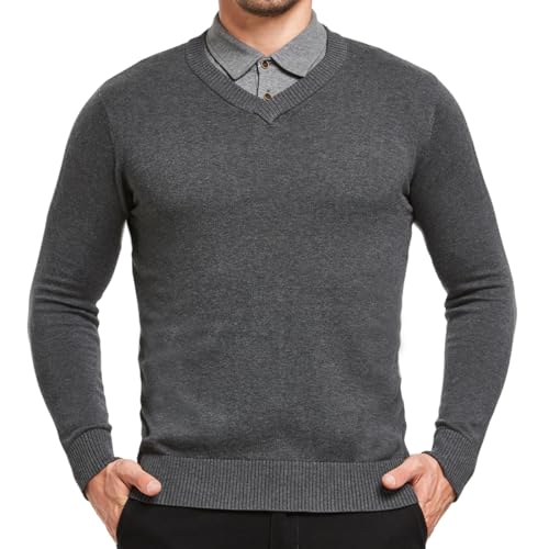 JustSun Mens Jumper Classic Sweater with V-Neck and Long Sleeve