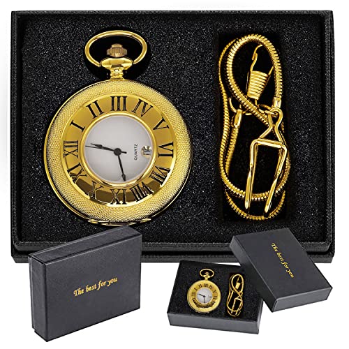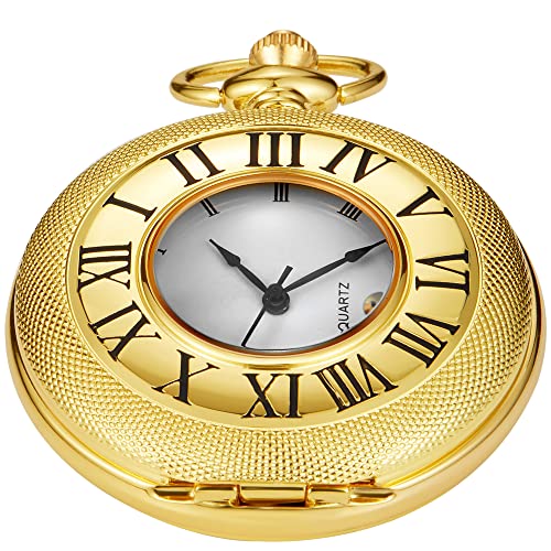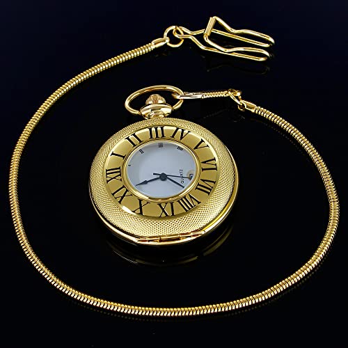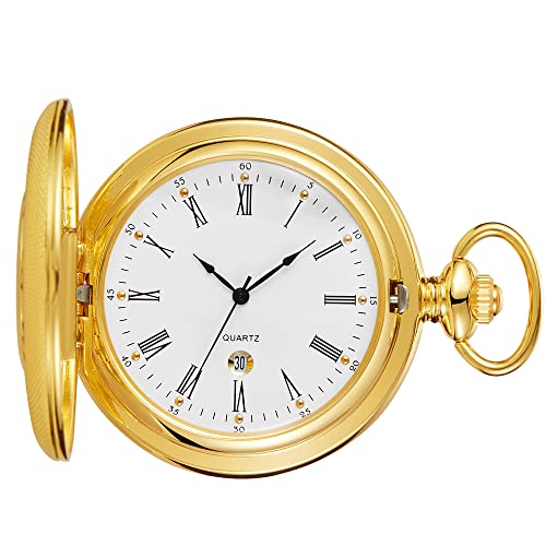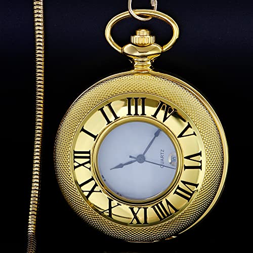 Tiong Vintage Pocket Watch with Chain Roman Numerals Scale Unique Quartz with Calendar Pocket Watches Birthday Gifts Fathers Day