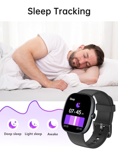 【24/7 Health Monitoring】Track your health around the clock with advanced sensors and algorithms. This fitness tracker smartwatch monitors heart rate, blood oxygen levels, and sleep patterns, offering detailed insights and recommendations to improve your health and wellness. It even provides a comprehensive sleep quality analysis to help you understand your rest.