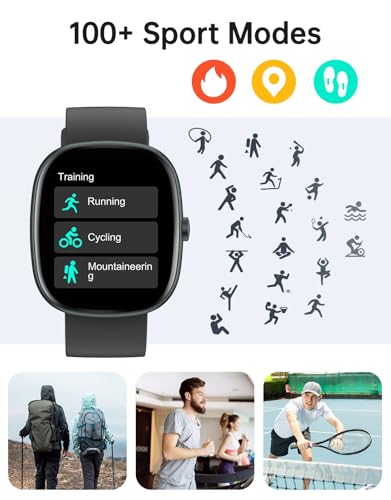【Why this smartwatch?】This versatile smartwatch seamlessly integrates into your daily life, offering over 100 sport modes, heart rate and sleep monitoring, and Bluetooth calling with message notifications. Its IP68 waterproof rating makes it perfect for outdoor activities like hiking or swimming, while the long-lasting battery (5-7 days) keeps you powered throughout the week. With a sleek design, customizable watch faces, and compatibility with iOS and Android, it’s ideal for both casual and formal occasions, supporting a healthier, more connected lifestyle.