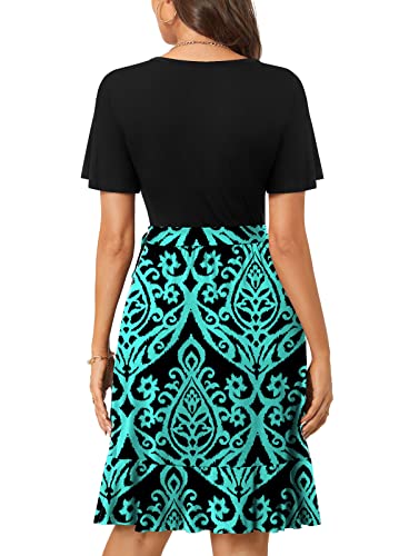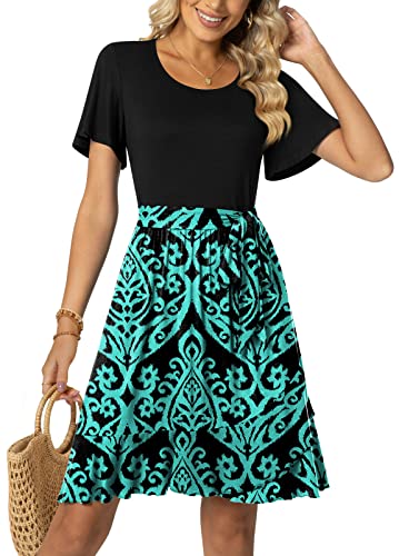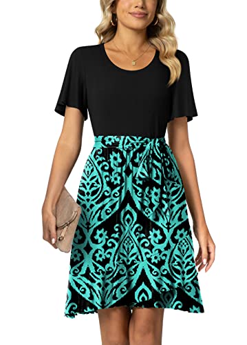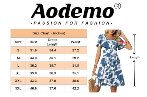Aodemo Women Casual Summer Empire Waist Short Sleeves Work Dresses Ruffle Hem Swing Tie Waist Beach Dress