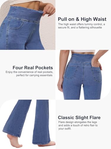 Chasehot Pull on Flare Jeans for Women, Trendy Stretchy High Waisted Bell Bottom Skinny Boot Cut Jeans Legging for Women