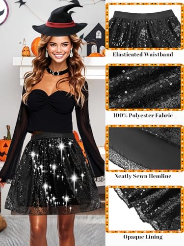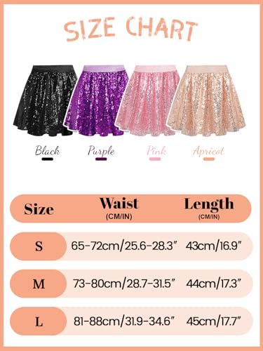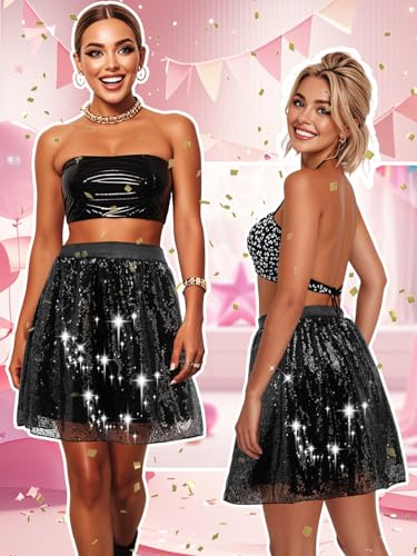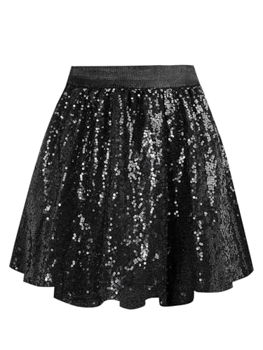 BALAYSIER Sequin Skirt with Lining High Waist Elastic Sparkly Skirts Mini A line Glitter-Skirt for Women