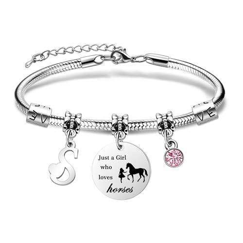 COEROW 26 Initial Letters Horse Bracelets Just A Girls Who Loves Horse Horse Bracelet for Women Girls