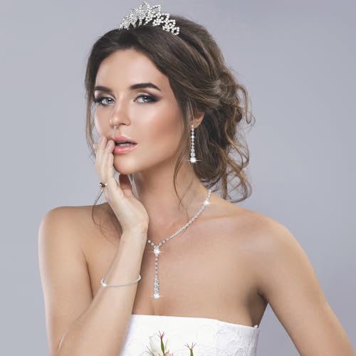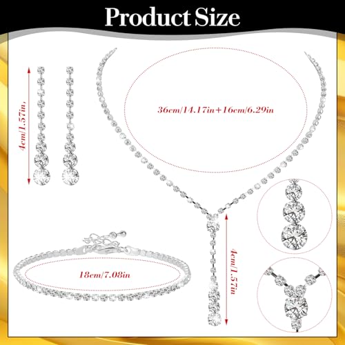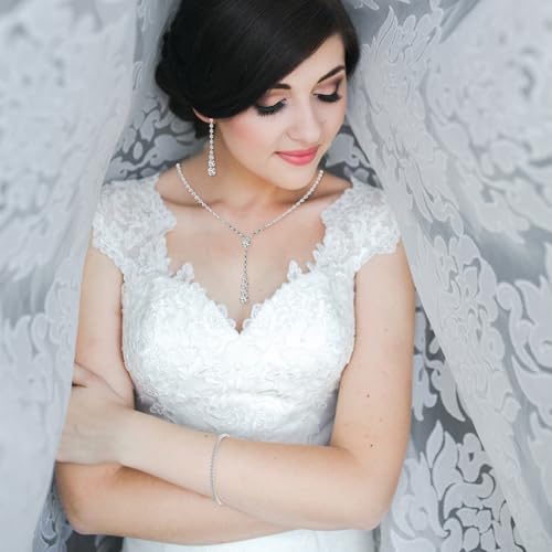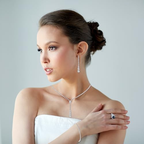 Bridal Jewellery Set Bridal Teardrop Diamante Necklace Crystal Drop Dangle Earrings Rhinestone Bracelet Wedding Silver Jewellery Set Prom Costume Jewelry for Bride Women Girls Wedding Party