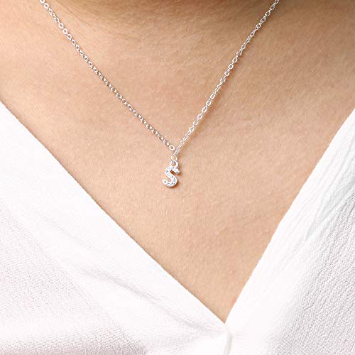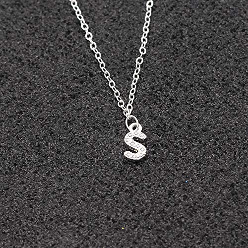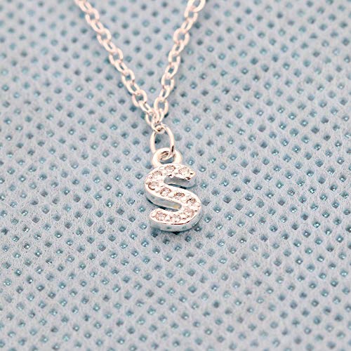 bifriend S925 Silver A-Z 26 Initial Crystal Pendant Chain Choker Necklace For Women Lady Girl