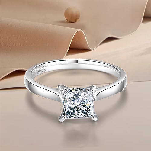 AVECON Women Engagement Rings 925 Sterling Silver Princess Cut Cubic Zirconia Eternity Wedding Ring Anniversary Bands for Her