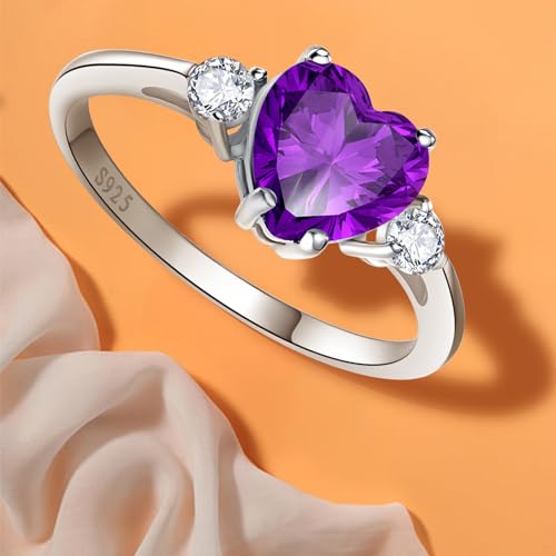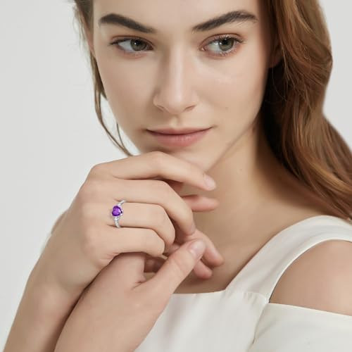Bonlavie 925 Sterling Silver Rings for Women 2.25ct Blue Sapphire/Green Emerald/Amethyst/Cubic Zirconia/Ruby Ring Rhodium Plated Heart Bridal Engagement Wedding Promise Rings Size J 1/2-T1/2