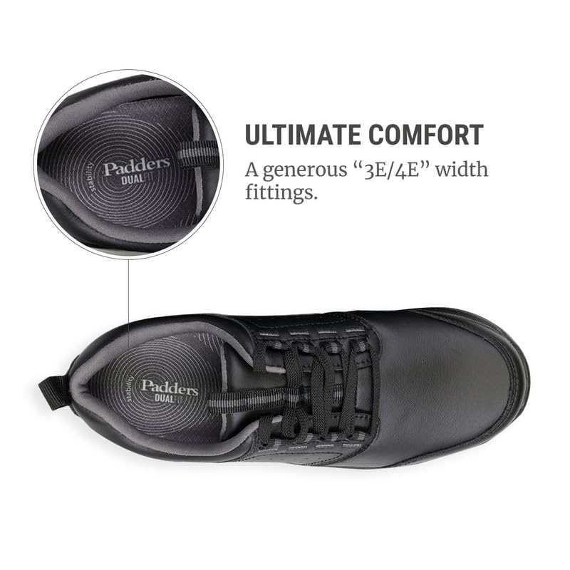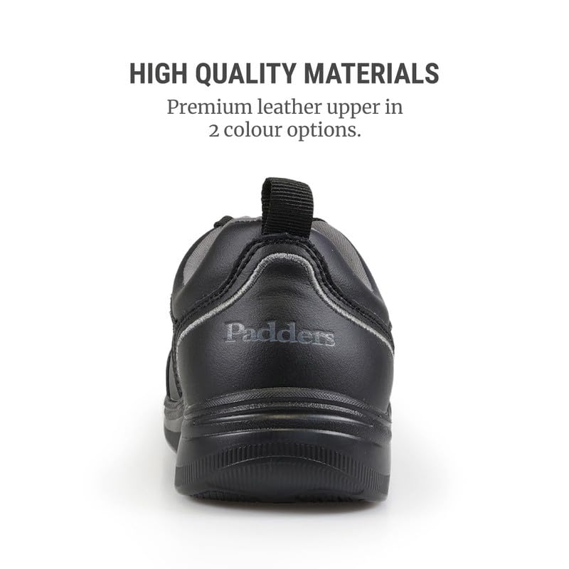 Padders Bobbie is an easy to wear lace-up shoe, designed with a soft leather upper. An extra wide 3E/ 4E fit, this dual fitting shoe has a removable footbed for a flexible fit, or to allow for the use of more personalised orthotics. Finished with a padded collar and with a heel loop tab for easy fitting, Bobbie offers a secure and comfortable fit with a sporty look, suitable for all seasons.