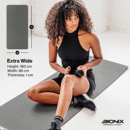 PREMIUM GYMNASTIC MAT: Bionix yoga mats for men & women feature high-density, soft NBR foam for superior cushioning and balance. Designed with a gently textured surface and a non-slip base, this travel yoga mat ensures excellent grip and long-lasting durability. Perfect for home workouts, it reflects eco-conscious design while providing a stable foundation for yoga, Pilates, and fitness routines. Experience unmatched performance and reliability in every session.