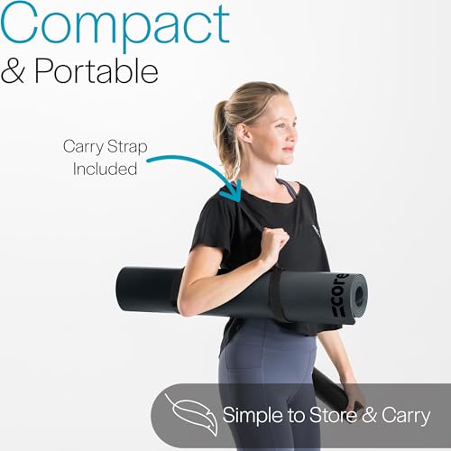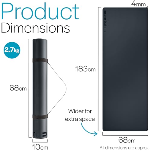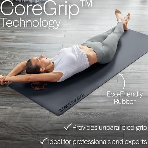 Core Balance Rubber Yoga Exercise Mat Non Slip Extra Wide Heavy Duty with Roll Strap