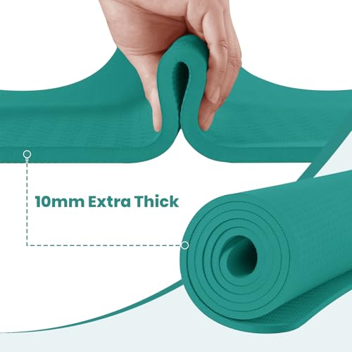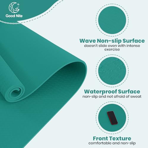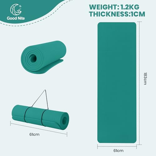 Good Nite Yoga Mat Exercise Mats Workout Pilates Fitness Mat for Women Men Non-Slip Thick 10mm High Density Gymnastics Mats with Carry Strap Tpe 183 x 61 x 1cm