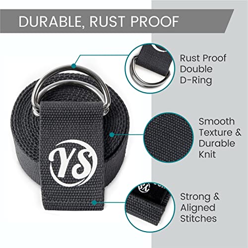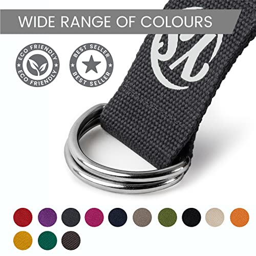 Yoga Studio Yoga Strap for Stretching, 2.5m (8.2ft) Extra Long Durable Organic Cotton Adjustable D-Ring Yoga Belt – Improving Flexibility, Exercise, Pilates, Dance, Workout, Gym, Physical Therapy