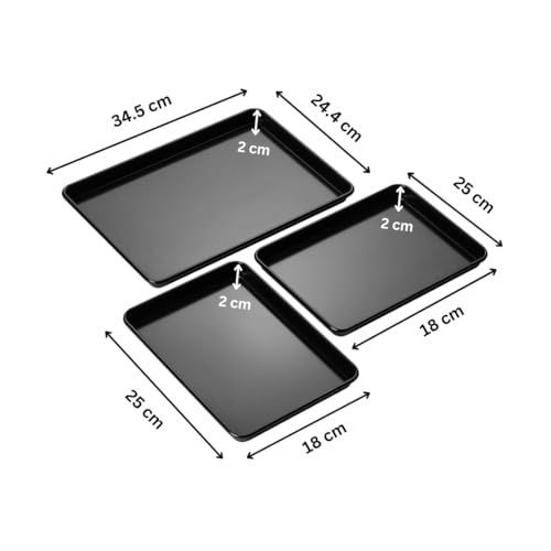 BAKING TRAY SET OF 3 – Professional oven trays for batch baking, cooking or roasting; One 34.5 x 24.4 cm large baking tray, Two 25 x 18 cm baking trays