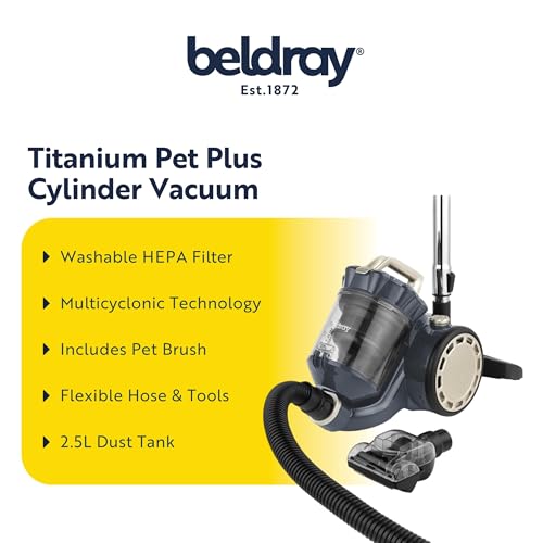 Beldray Titanium Pet Plus+ Multicyclonic Vacuum Cleaner – Bagless Cylinder Vacuum, Includes Pet Brush, Flexible Hose & Crevice/Brush Tool, 2.5L Dust Tank, Washable HEPA filter, 700W, BEL0812TT