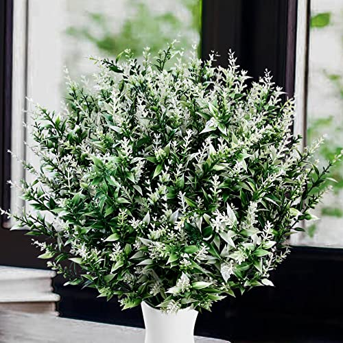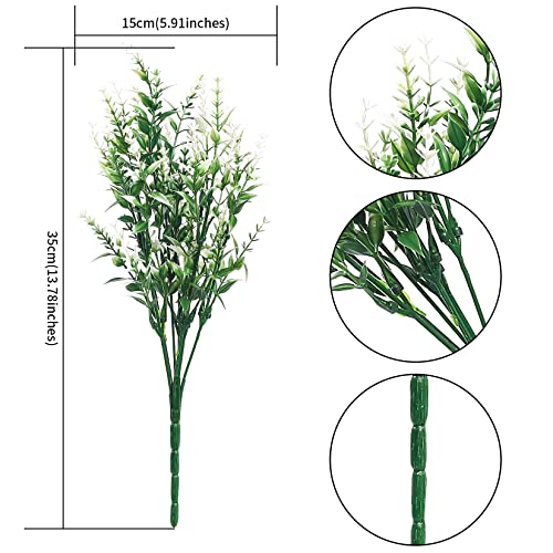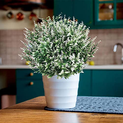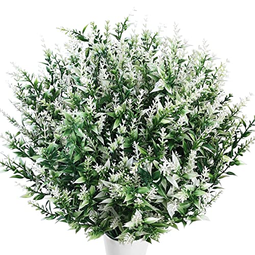 Xiaomoyu 6 Pcs Artificial Lavender Flowers, Fake Faux Lavender Bouquets, Plastic Outdoor Indoor Artificial Flowers Plants UV Resistant Greenery Shrubs Planter for Wedding Garden Decorations – White