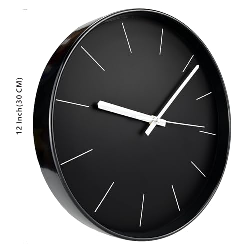 Modern Minimalist Design: The clock face is sleek, clean and simple, with black lettering on a white background providing a clear view; the surface is covered with glass to keep out dust and water vapor; 12-inch the clock frame is made of ABS material for long-lasting quality and durability.