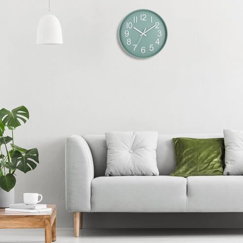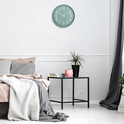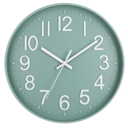 Esteopt Wall Clock 12″ Silent Non-Ticking Modern Wall Clocks Battery Operated for Office, Home, Bathroom, Kitchen, Bedroom, School, Living Room (Green&White)